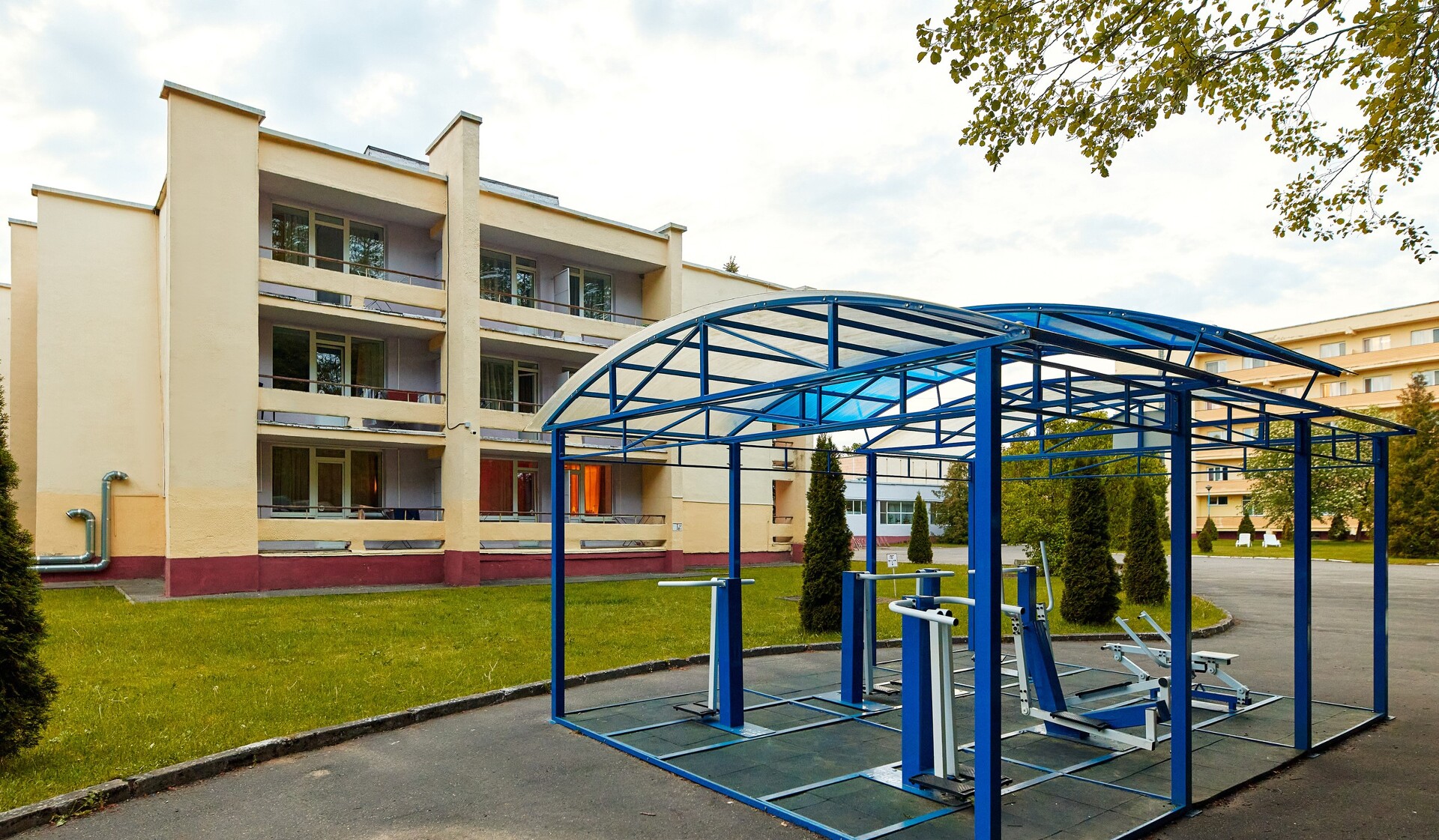Санаторий имеет собственную огороженную, охраняемую территорию, на которой расположены лечебный корпус, закрытый бассейн, три спальных корпуса, столовая.