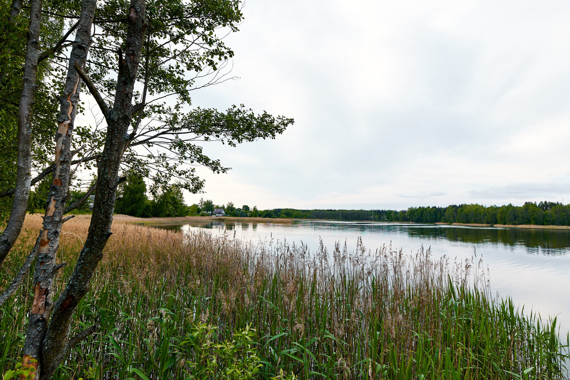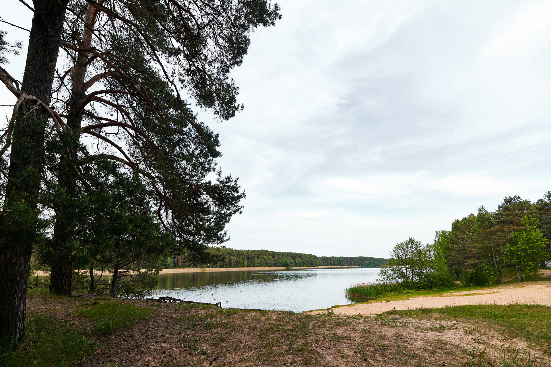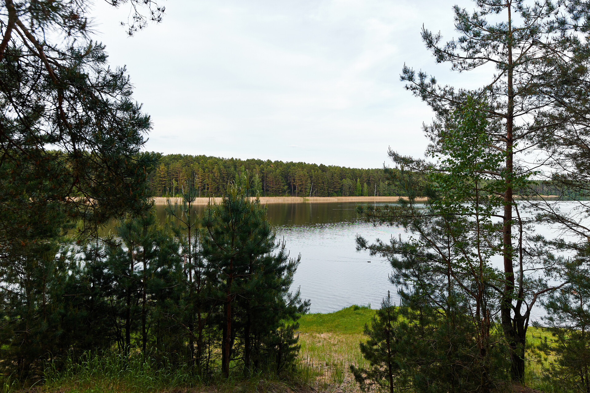 Вокруг смешанный лес, на берегу озера