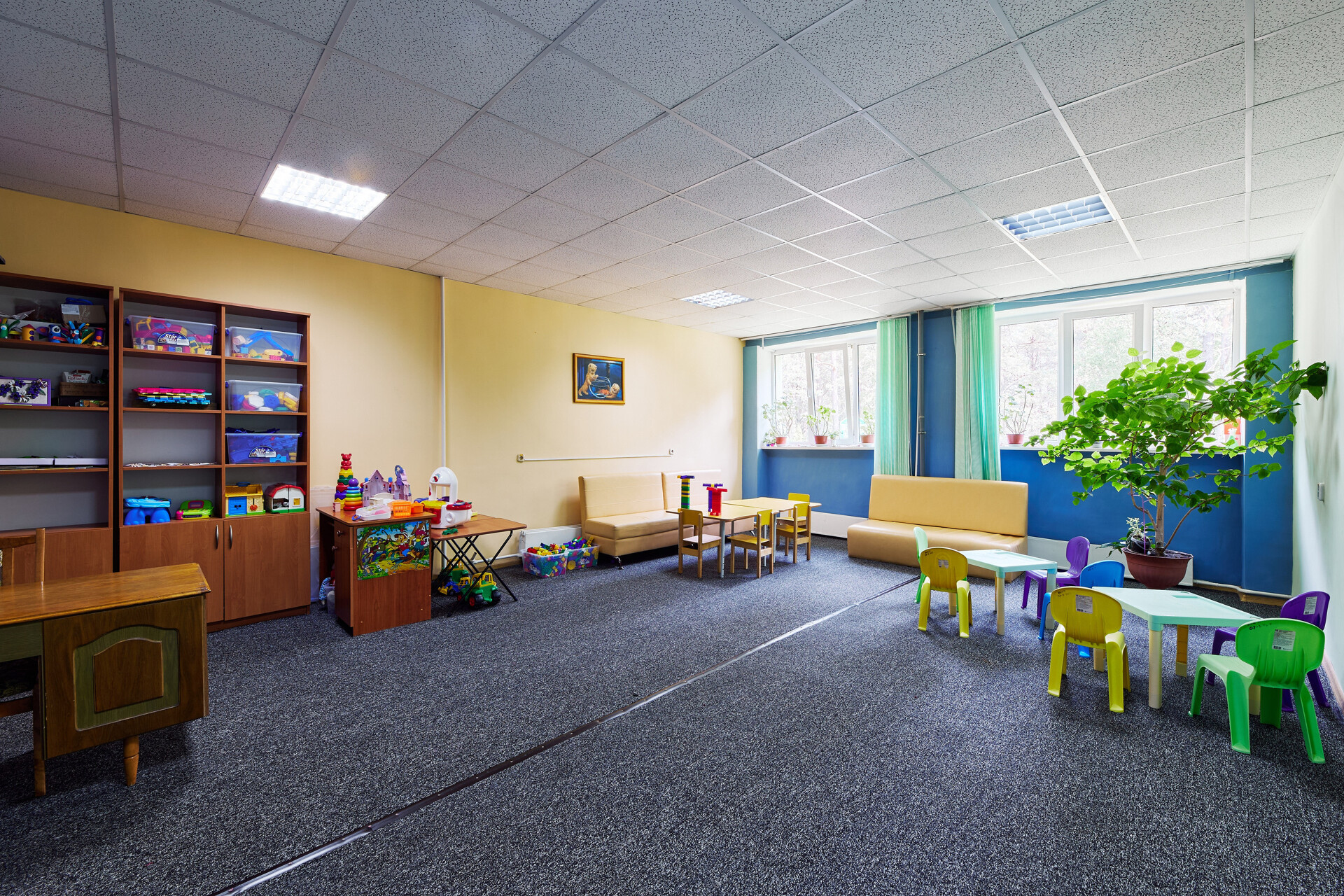 На территории санатория есть оборудованная детская комната, где за малышами может присмотреть профессиональный воспитатель и взрослые могут уделить время себе, не беспокоясь о своих малышах