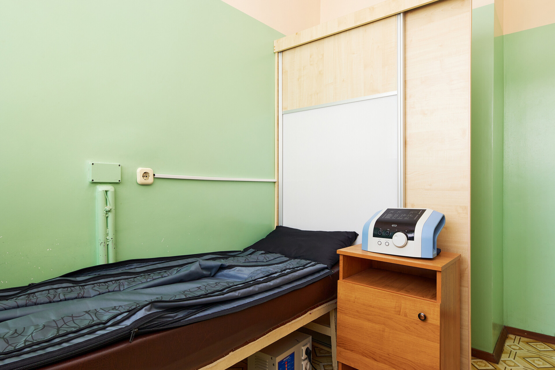 | Физиотерапия (два вида): -синусоидальные токи (СМТ) -интерференционные токи (ИТ) -ультразвуковая терапия -электрофорез лекарственных средств -электросон -диадинамические токи (ДДТ) -индуктотермия -микроволновая терапия (ДМВ, СМВ, КВЧ) -ультратонотерапия -магнитотерапия -лечение поляризованным светом | 4 | 5 | 6 | 7 | 8 | 9 | |