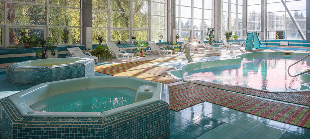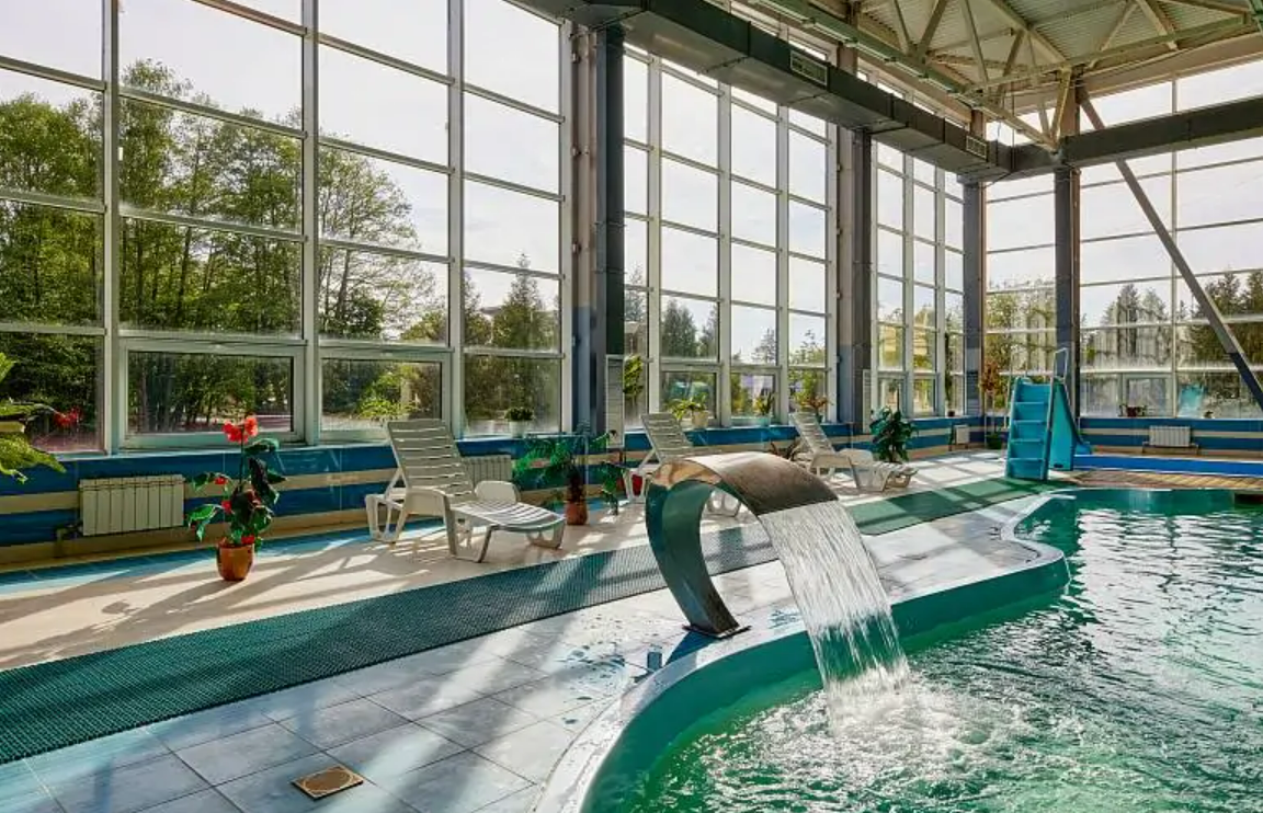 В санатории Поречье размещается очень красивый и большой плавательный бассейн с комплексом саун.