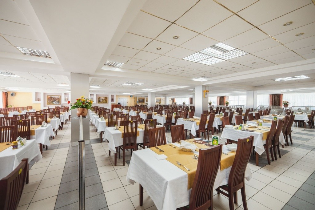 Пищеблок находится в главном корпусе санатория. Современный дизайн и музыкальное сопровождение создают уютную атмосферу. Для удобства отдыхающих установлены микроволновые печи.